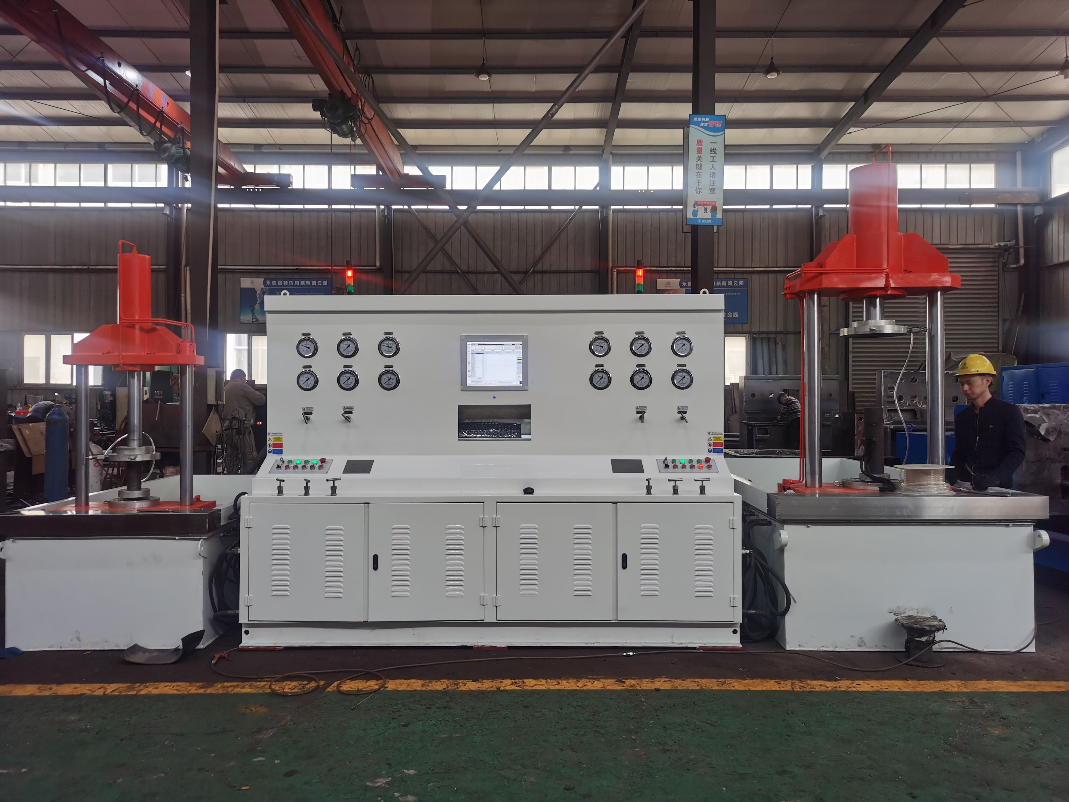 公司專注于各種閥門密封、強度、扭矩和壽命的各項閥門性能檢測試驗設備,如PLC控制儲存打印智能試驗機、閥門扭矩力試驗臺、壽命測試機的研發(fā)和市場銷售,為廣大用戶解決最佳多方位閥門壓力試驗方案,國外客戶如:新加波OSA(歐颯)閥業(yè)、韓國NSV閥業(yè)和韓國S&W閥業(yè)、德國馬格德堡閥業(yè)、美國柯蒂斯、日本替克斯閥門和沢村閥門。國內(nèi)知名公司如:方正閥門、天津百利國際機械、超達閥門、上海滬工、浙江石化、成高乘風、天津卡爾斯、中船重工船用閥門和上海滬東船用閥門等,閥門使用方:如中國石油(大慶安裝公司、土庫曼天然氣工程、伊拉克哈法亞油田公稱)、中石化(四川油建、鎮(zhèn)海煉化、上海石化、金山石化)中海油(天津公司、惠州大亞灣、茂名公司、深圳公司)國家核電建設工程公司(山東核電設備制造公司、秦山核電工程公司、陽山核電工程公司)陜西延長石化、中國化建等大型化工重點工程供應測試設備和技術方案。本公司擁有員工35人,其中2名高級工程師領銜創(chuàng)新研發(fā)團隊,從研發(fā)、生產(chǎn)、銷售三個主要部門支撐公司合理運行,陸續(xù)開發(fā)了“JWZ臥式、JLT立式、JWZQ潛水式、JWT頂壓式、JWM閥門研磨機等”并獲得了14項國家技術專利。系列閥門測試機集PLC液晶觸摸屏、液壓、機電、試壓和液體介質(zhì)儲存循環(huán)使用一體,具有功能完善,性能穩(wěn)定,自動化程度高等特點,公司先后通過ISO19001 質(zhì)量體系認證和歐盟CE認證,是閥門壓力檢測設備的領先制造商。